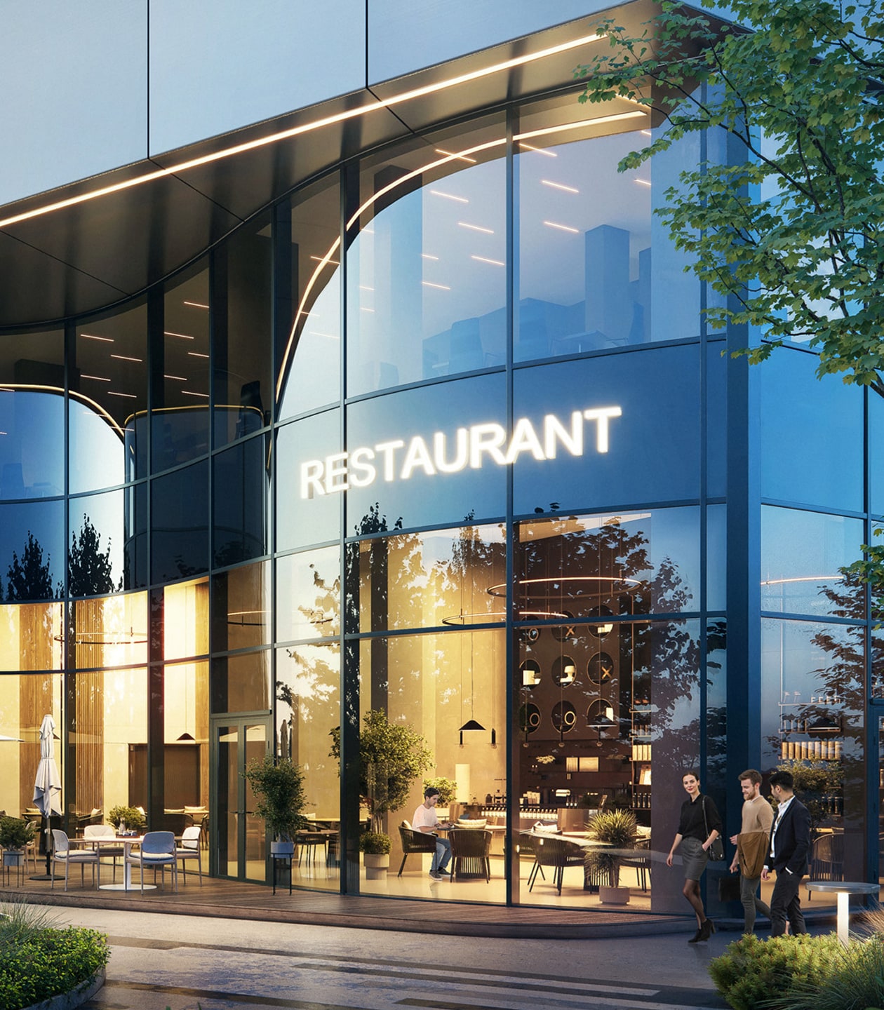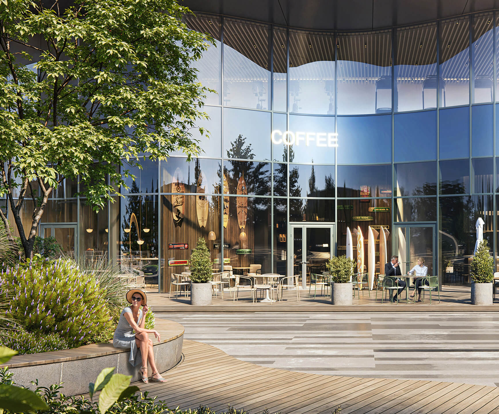 Два уровня коммерческой инфраструктуры, продуманной для ежедневного комфорта резидентов. Здесь расположены торговые галереи, рестораны и кафе, фитнес.